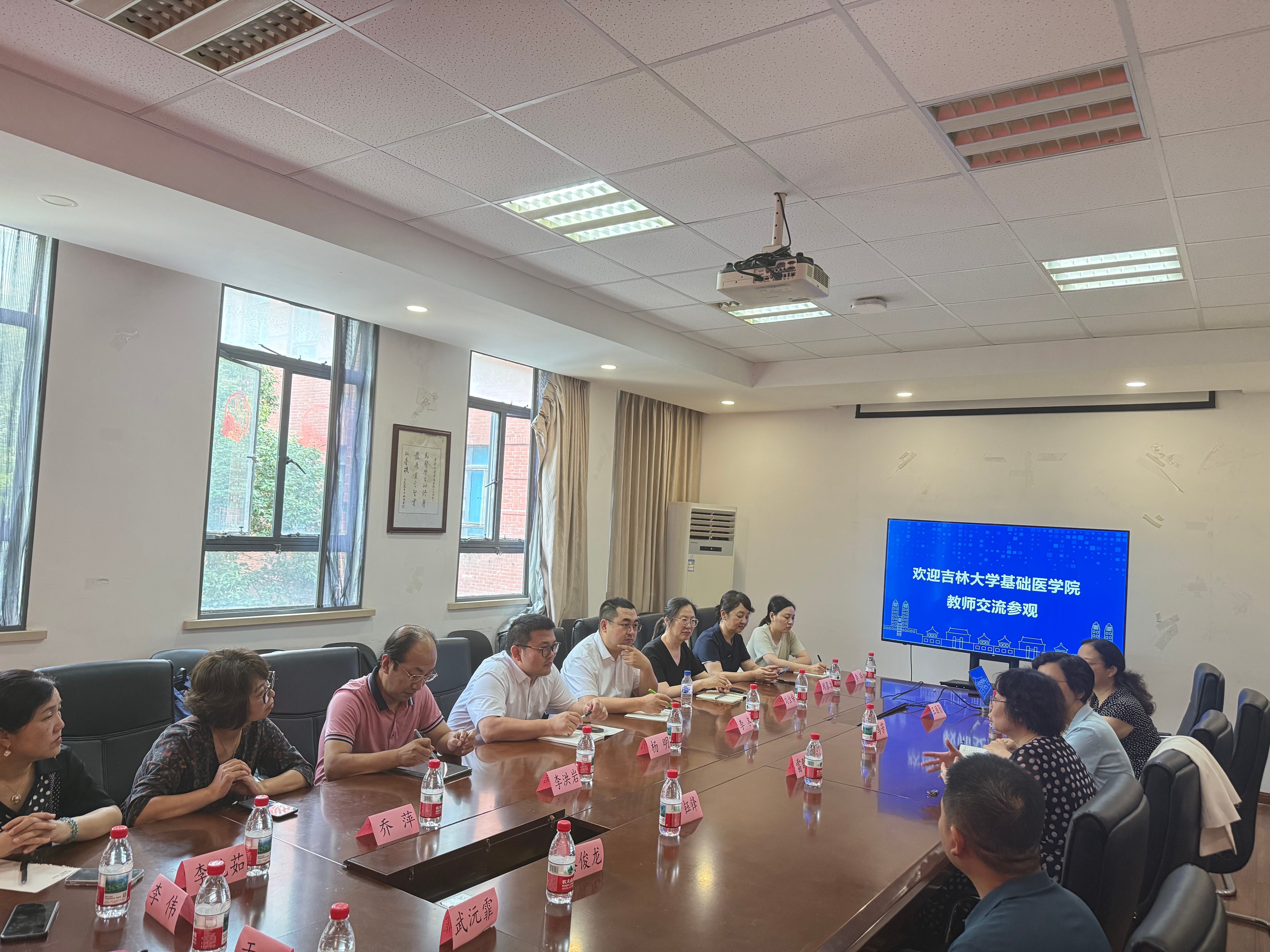 雷群英院长对吉林大学同仁的来访表示热烈欢迎,并系统介绍了学院近年来在人才培养模式改革、科研平台建设与师资引育方面的实践成果。她重点分享了“教学科研一体两面”的办学理念在教学评估体系中的应用,通过“学生-导师面对面交流会”“学生-院长午餐会”等多种形式,了解学生真实需求,优化培养策略。同时,推行实验室轮转制度,鼓励学生在多元科研环境中寻找学术方向,形成早期科研介入机制。吕鸣芳副院长随后介绍了复旦大学基础医学课程体系的优化举措,包括打破学科壁垒构建“器官系统”整合课程、设立本研贯通的荣誉课程、推动交叉融合型课程建设,以及拓展国际化培养路径,着力提升学生的综合能力与全球视野。