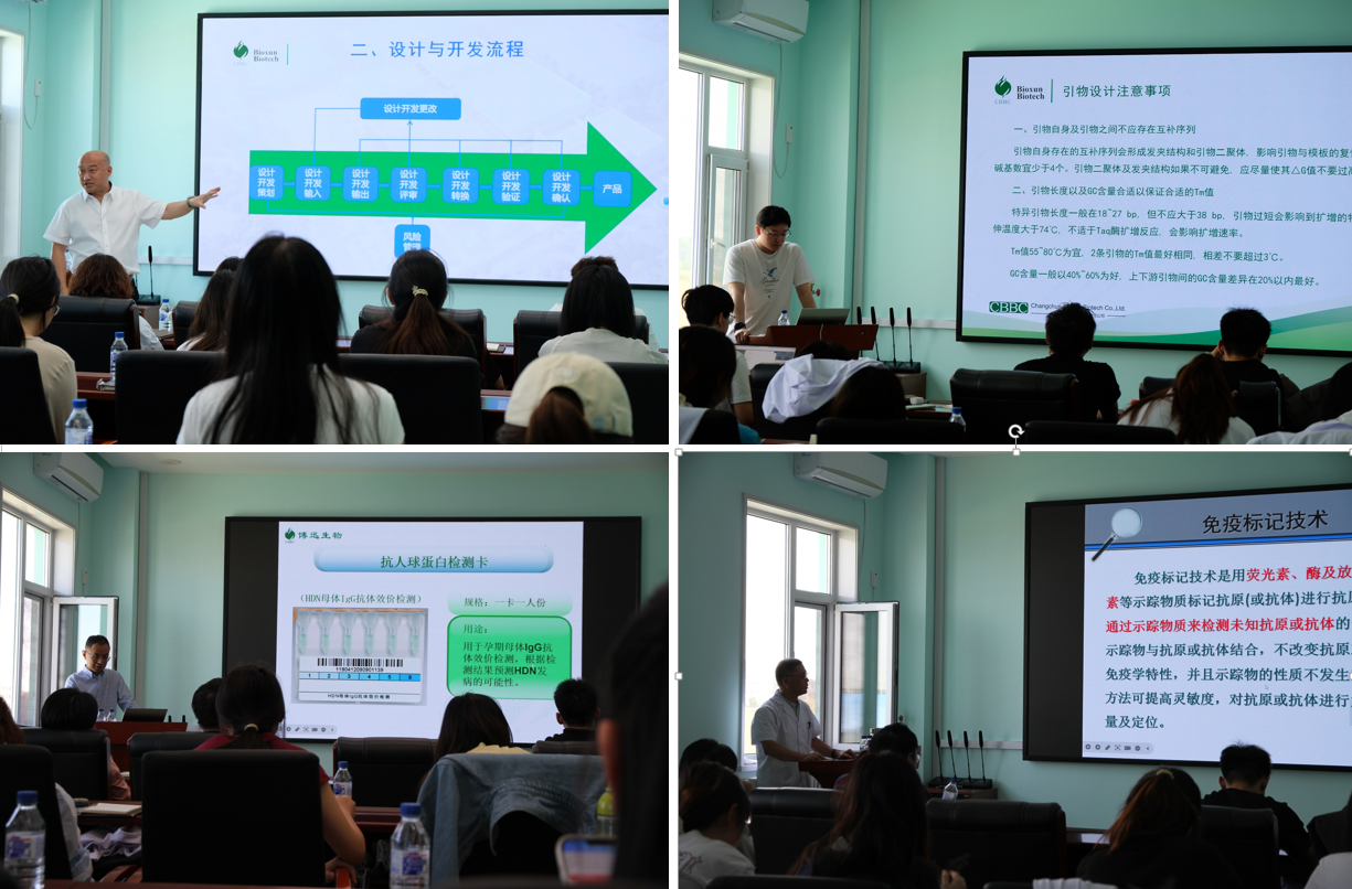 在企业技术骨干和学院指导教师的带领下,学生们先后参观了公司的研发实验室、质量控制中心以及符合GMP标准的生产车间,深入了解抗原抗体制备、试剂盒组装、质检流程等核心环节,直观感受到生物技术从基础研究到产业转化的完整链条。同时,围绕血型血清学、单克隆抗体技术、胶体金及分子生物学等专题,公司安排了实训课程,学生们分组轮岗,在严格规范的指导下亲身参与实验操作,将课堂所学的分子生物学、免疫学、细胞生物学知识与实际研发生产相结合。五天的实践活动采用“即学即用、双向反馈”的模式,不仅锻炼了学生的动手能力,也让他们切身体会到科学精神与工匠态度在产业实践中的重要价值。实习让学生深刻认识到生物医学技术的生命力与广泛应用,拓展了学术与行业视野。