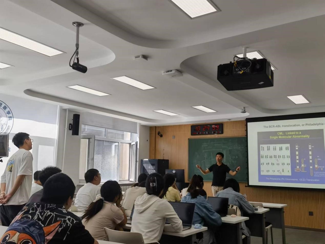 Dhan V. Kalvakolanu 教授的授课内容涵盖分子生物学前沿与高水平学术写作两大模块。他系统阐述了基因表达的时空调控机制、细胞信号传导通路、生长因子功能及其在肿瘤发生中的作用,以及程序性细胞死亡的分子机制。通过大量图示与案例,他将复杂的知识生动具象化,帮助学生深入理解核心概念。在学术写作环节,他结合自身丰富经验,全面讲解了论文撰写规范、图表呈现标准、审稿意见回应策略以及科研伦理与数据管理的国际规范,引导学生逐步建立起科学严谨的学术写作框架。同时,他还鼓励学生围绕“信号通路异常与疾病机制”“生长因子受体突变与肿瘤靶向治疗策略”等议题展开讨论,课堂氛围热烈,互动频繁。