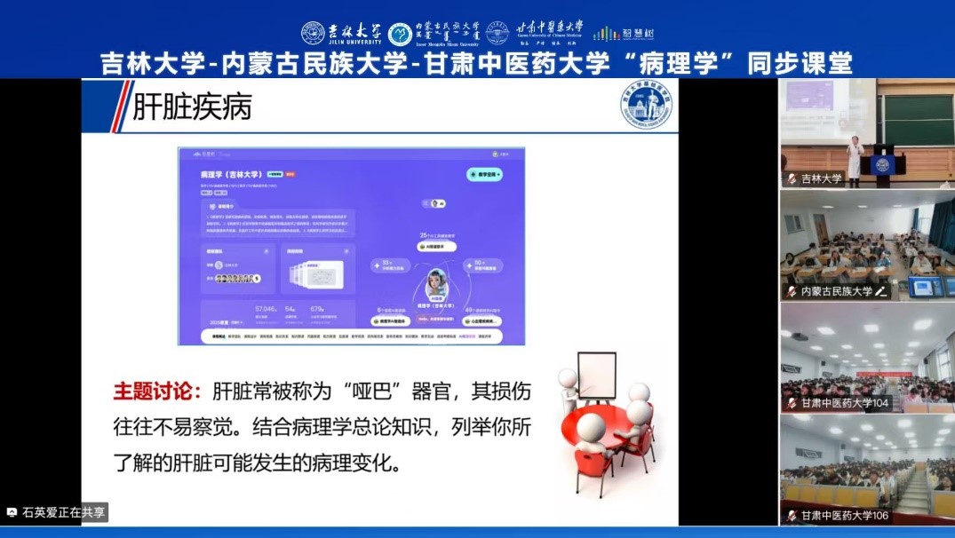 本次同步课堂聚焦《消化系统疾病-肝脏疾病》,由云顶国际8588yd病理学系石英爱教授主讲。课堂采用"理论讲授+临床案例解析+实时互动"的教学模式,通过高清影像传输技术,将吉林大学的优质教学资源实时输送至西部高校课堂。