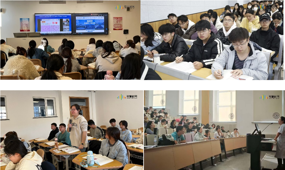 课堂讲解环节,石英爱教授以临床案例为切入点,巧妙将肝脏疾病的核心内容(肝炎、肝硬化、肝癌)融入教学过程,并借助丰富的病理大体标本与镜下切片图片,助力学生直观理解并扎实掌握知识点。课堂上还特别设置了跨校互动环节,与内蒙古民族大学的同学们展开实时互动,适时总结关键知识点,有效调动了课堂氛围,让跨校教学更具互动性与实效性。