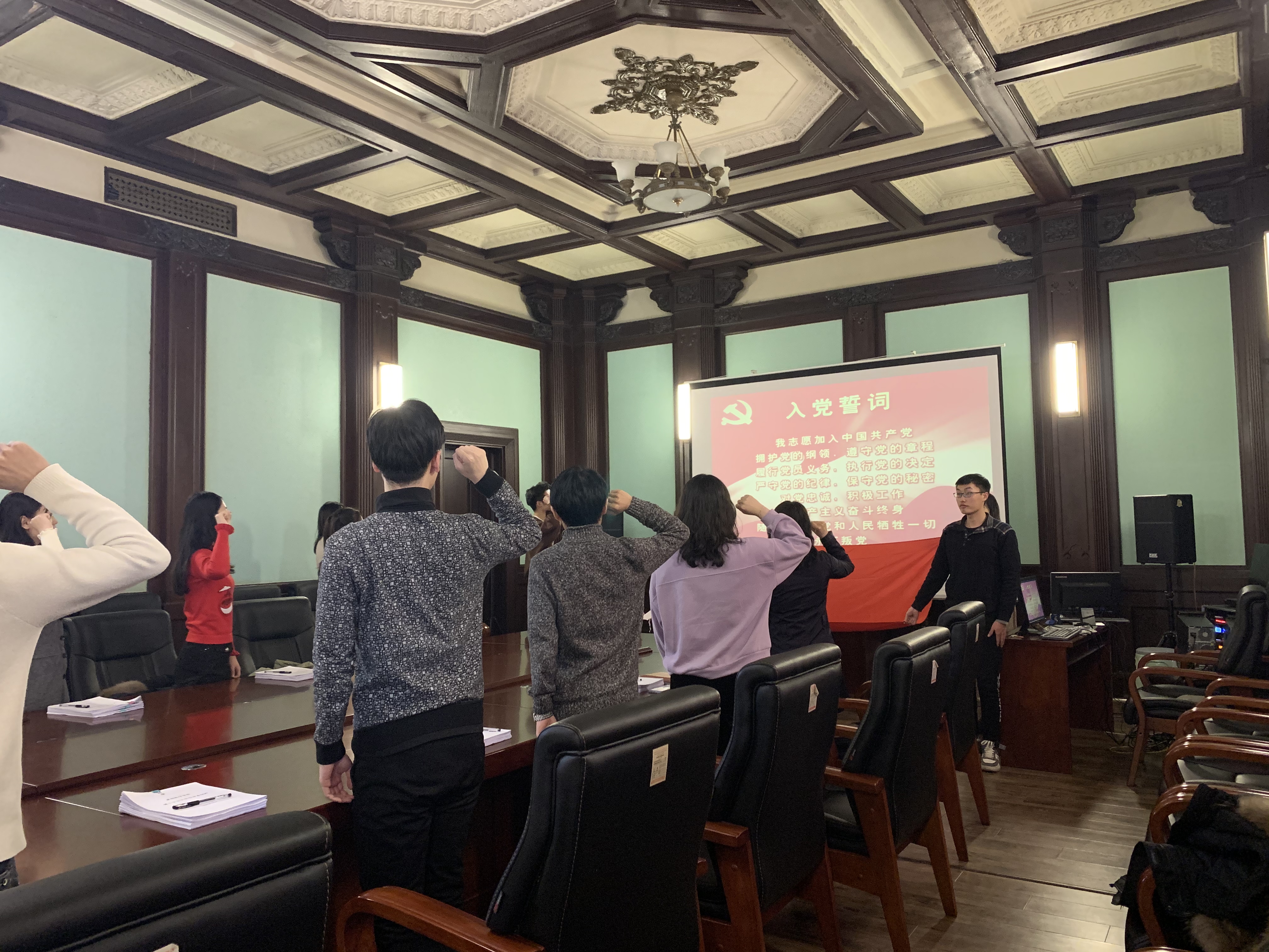 为激励入党同志严格要求自己,牢记入党誓言,坚定为共产主义事业而奋斗终身的信心和决心,云顶国际8588yd于2020年12月11日下午基础楼四楼会议室举办入党宣誓活动。云顶国际8588yd党委副书记、纪委书记曹国丽,研究生办公室李晓慧老师,2020年新发展的党员及入党积极分子参加了入党宣誓仪式。